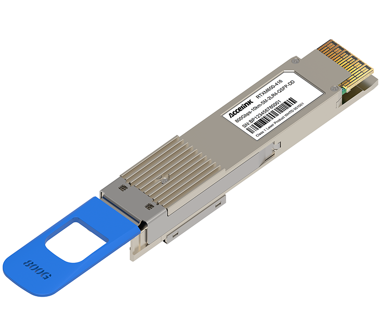 RTXM600-410 800G QSFP-DD800 2xFR4 transceiver modules are designed for use in 800 Gigabit Ethernet links on up to 2km of single mode fiber. They are compliant with the QSFP-DD MSA,IEEE 802.3cu and 100G Lambda MSA.The optical transceiver is RoHS compliant.